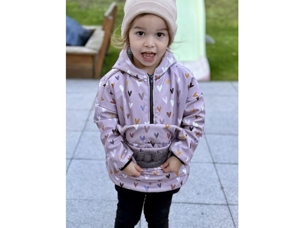 Lehce oversize střih zajistí, že se bunda snadno obléká i přes silnější mikinu a dětem poskytne volnost pohybu. Praktický poloviční zip usnadňuje oblékání přes hlavu a prostorná kapsa na břiše pojme rukavičky, kapesník nebo malé poklady na cestách.